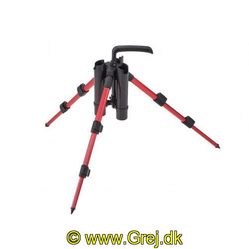 This telescopic rod holder can hold up to 3 rods. The special feature is that it can be folded like an umbrella. Dimensions: Minimum height: 24cm. Maximum height 49cm. Transport dimension 39cm.
